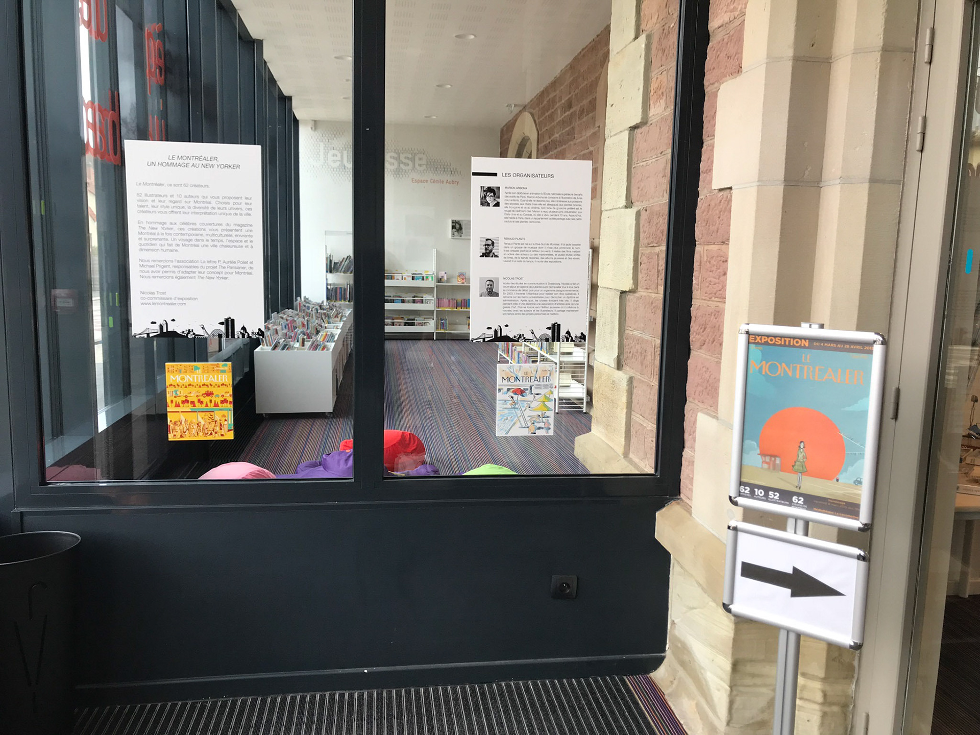 Du 4 mars au 30 juin 2019, l'exposition fût présentée à la médiathèque La Locomotive de Wisches, en France. Pendant deux mois, les oeuvres et les textes iront à la rencontre des Français pour leur faire découvrir Montréal ainsi que le talent des artistes québécois. Nous remercions la municipalité de Wisches, l'équipe de la médiathèque ainsi qu'Hélène Weber et Christine Blanck pour leur soutien et leur appui. L'exposition devait se terminer le 28 avril 2019 mais elle a été prolongée de deux mois suite à l'extrême engouement qu'elle a suscité.