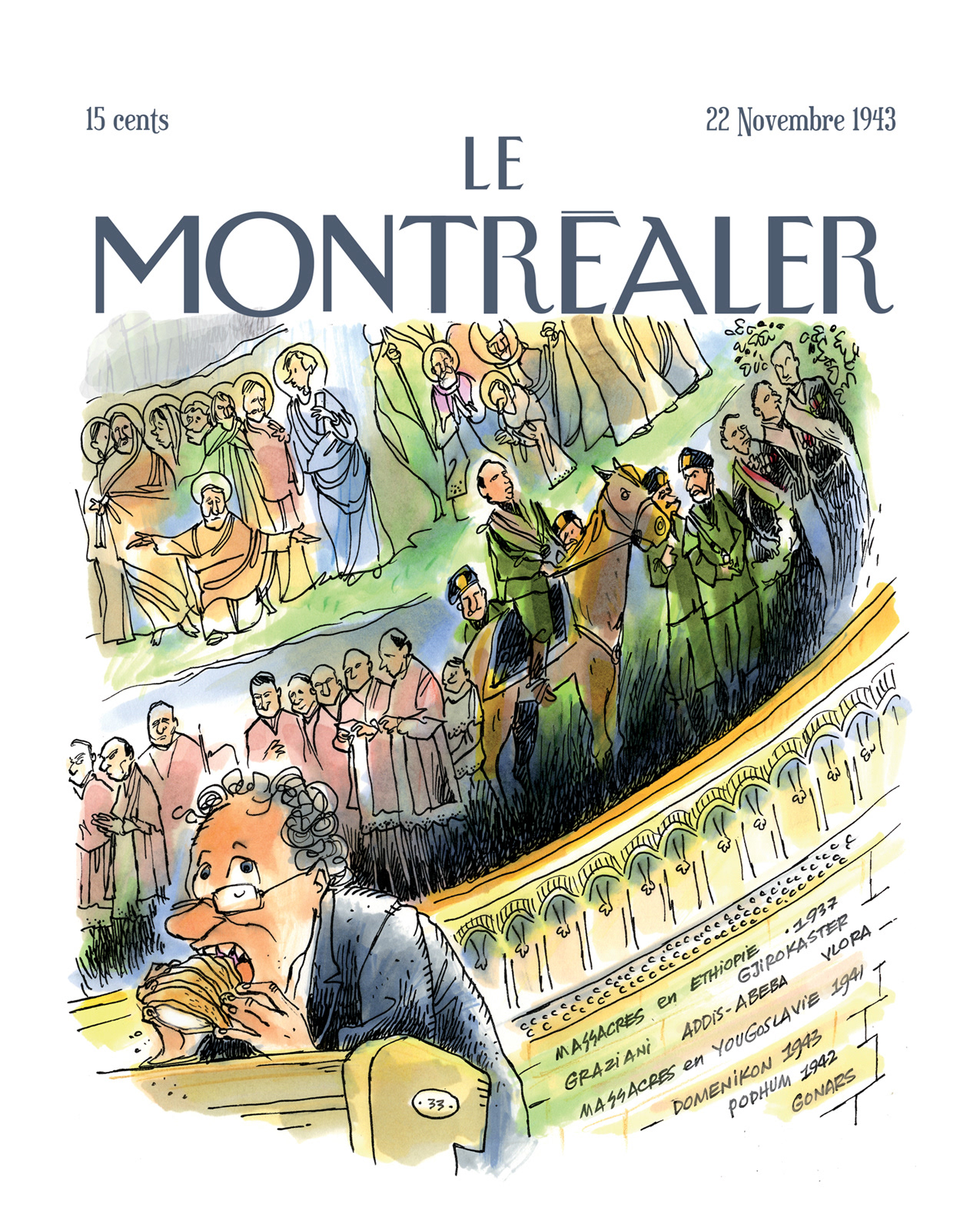 22 novembre 1933 — Date de fin de création de la fresque de Guido Nincheri (1930-1933) à l’église Notre-Dame-de-la-Défense (anges et saints avec Benito Mussolini)