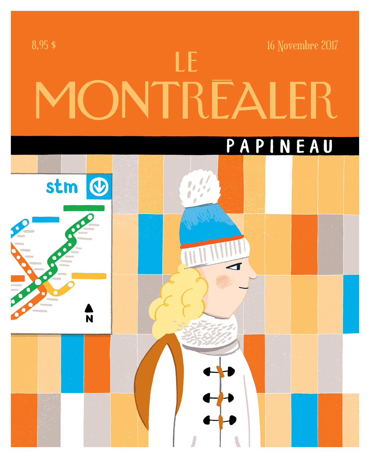 Étant résidante de Québec, je ne connais pas grand-chose de la vie de quartier dans la métropole, et mon contact avec la ville passe inévitablement par le métro ! Par ailleurs, j’aime l’esthétique des années 1960-1970 qui y règne : les céramiques et leur palette de couleurs résolument d’époque, le béton moulé, la signalétique… Le thème s’est rapidement imposé à mon esprit. J’ai surtout cherché à illustrer une ambiance plutôt qu’une scène.